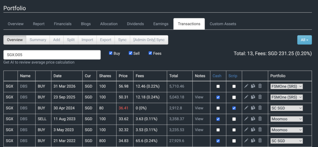 • Go to transaction page on desktop and filter by the stock you want (see image below).